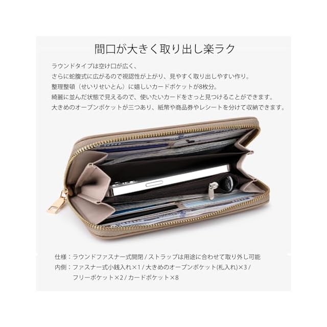♥おしゃれで収納性の高いラウンドファスナー長財布。