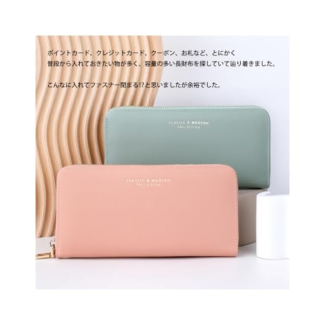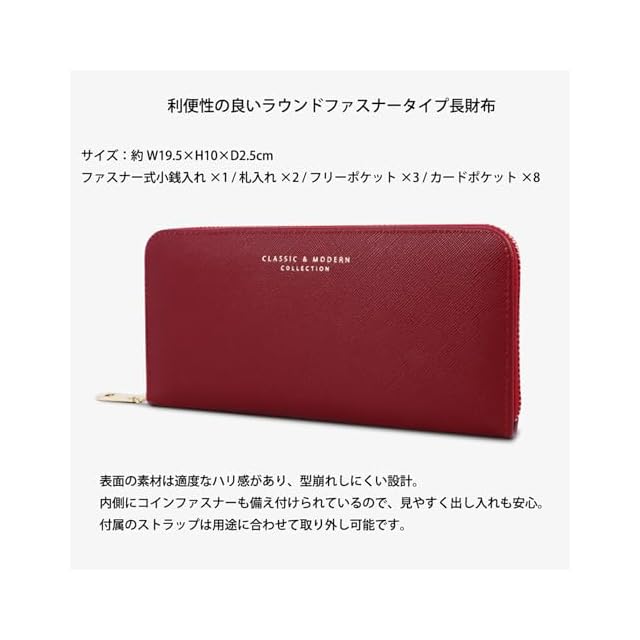 ♥おしゃれで収納性の高いラウンドファスナー長財布。カード入れ8箇所、大きめオープンポケット3箇所、フリーポケット2箇所、ファスナー小銭入れ1箇所、スマホ入れ可能。
