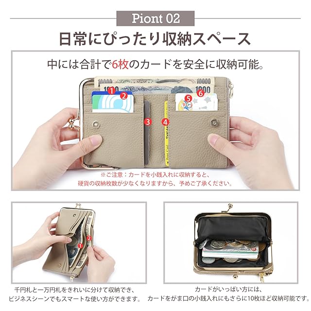 【2種類のコインポケットで使い分け自由】この財布には、2つの異なるコインポケットが備わっており、片側はクラシックながま口デザイン、もう片側はジッパー式。これにより、硬貨やカード、小型の口紅、リップクリームなど、ちょっとした必需品をしっかり収納できます。特に、極Minimalなスタイルで出かけたい方にもぴったりです。がま口部分は高品質の金属素材を使用し、複数回の電気メッキ加工が施されているため、長く使用しても輝きを失わず、錆びにくいのが魅力です。コンパクトながらも収納力が抜群で、日常使いに最適です。