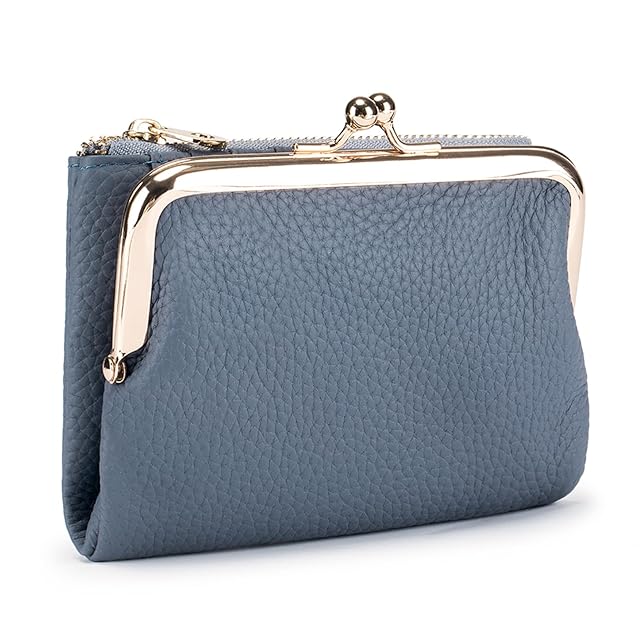 《新品未開封》[imeetu] がま口財布 本革 レディース 二つ折り財布 旅行財布 大容量 柔らかい 小銭入れ付き 牛本革 軽量 多機能 コンパクト カジュアル (ブルー)