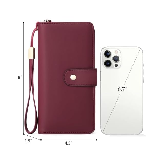 【持ち運びに革財布】財布のサイズは20*11.5*3.5 cm、重さ: 260 g。レディース 財布 二つ折りには取り外し可能なリストバンドが付いており、安全で持ち運びが便利です