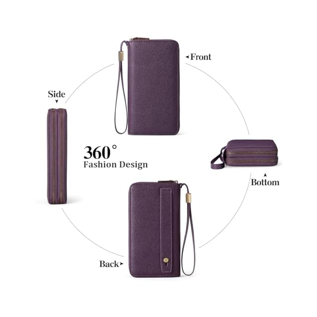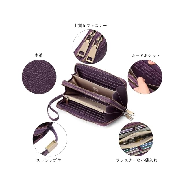 【ダブルジップデザイン】財布 レディースには2つの独立したファスナー仕切りがあり、必需品を整理するための最大のスペースを提供します。24枚のカードケース(各種クレジットカードを収納可能)、4枚のお札入れ(現金、領収書または手形を収納可能)、4枚の全長内側仕切り(現金、小切手帳または携帯電話を収納可能)、1枚のファスナーポケット(小銭と硬貨を収納可能)。