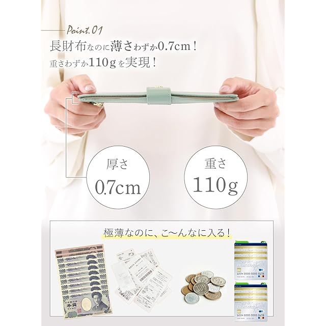 ✅上質なシュリンクレザーを使った高見えの長財布は、丈夫でキズ・汚れがつきにくく、シンプルなデザインに詰め込まれた高機能が特徴です!キャッシュレス時代に合ったミニマルなライフスタイルを支える、バッグの中に入れてもかさばらない長財布に仕上げました! 【サイズ】縦195㎜/横105mm/奥行7mm(フラップ部分を除く) 重さ110g<BR> ✅✅【超薄型・スタイリッシュ】なんと薄さわずか7mm!今流行の小さなハンドバッグやミニトートバッグ等にもかさばらずすっぽり納まり、シルエットが崩れにくい!また、中身の落下を防ぐおしゃれなフラップボタンを採用いたしました。<BR> ✅✅✅【大容量・パッと使える】16か所のカードスペースとレシートポケットを備えており、極薄ながら大容量・使いやすさにもこだわりました!小銭ポケットが外側にあり、マチ幅にもゆとりを持たせているため、いざという時に小銭を焦らずパッと取り出せます!またお札を折り曲げずにそのままサッと収納できる長財布です。<BR> ✅✅✅✅【磁気干渉防止・スキミング防止機能】革と芯部分の間に磁気干渉防止素材(RFIDブロック素材)が入っており、近年増加しているスキミング犯罪から大切な個人情報を守る「RFIDブロック機能」でセキュリティ対策を施しています!<BR> ✅✅✅✅✅【類似品にご注意ください。お買い物は日本企業で】見た目の画像は同じような商品でも、作る工場や品質・対応は全く違います。すぐに壊れる・色が画像と違う・連絡をしても返事がない等色々なトラブルがございますので、販売業者は慎重にお選びくださいませ。日本企業でのお買い物はアフターケアも充実。何かございましたら、弊社日本人スタッフが迅速に対応させていただきます。