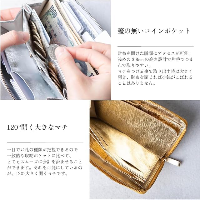 整理整頓しやすい内装設計。 蓋の無いコインポケットは、財布を開けた瞬間にアクセスが可能。
