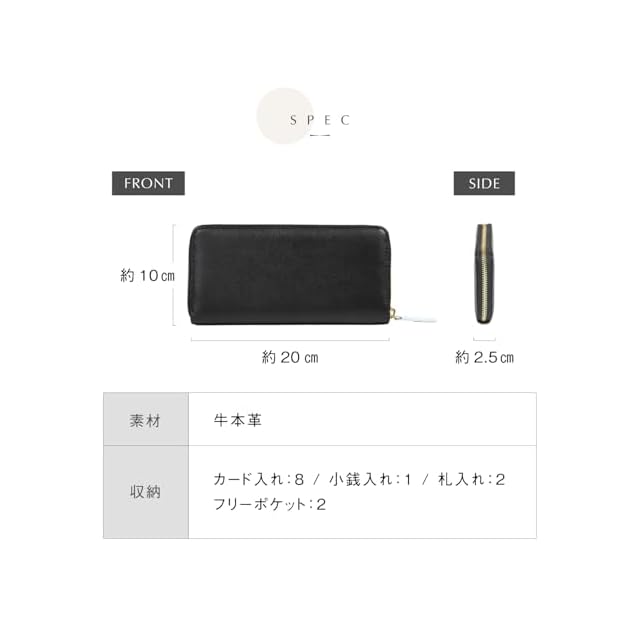 ✅【中身が一目瞭然】ファスナーをあけるときの開きにこだわり、中身が一目瞭然で見れます。マチがかなりあるのでお札もたっぷり。 お札は最大50枚ほど収納できます。✅【収納力も抜群】カード入れ8箇所、札入れスペース2箇所、小銭入れ1箇所、フリーポケット1箇所の必要十分な収納力です。 定番タイプで使いやすさ抜群です。