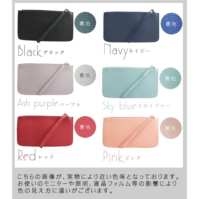 ◆ハンドストラップ付き<br>ステッチがおしゃれなハンドストラップ付き。<br>落下防止だけでなく、見た目もワンランクアップします。<br><br>◆I字ファスナー<br>スマートなゴールドパーツを使用したファスナー。<br>シンプルかつ使い勝手も意識したデザインになっています。<br><br>◆マルチポケット搭載<br>独立した3ポケットに、きれいに整理をして収納する事ができます。<br><br>◆商品詳細<br>本体:約11×20.5cm<br>ハンドストラップ:約14.5cm<br>ポケット収納可能サイズ:画像参照<br>重量:約60g<br><br>※採寸には若干の誤差があります。<br>※糸未始末、裁縫のズレがある場合があります。<br>※仕様は改善の為に予告なく変更する場合があります。