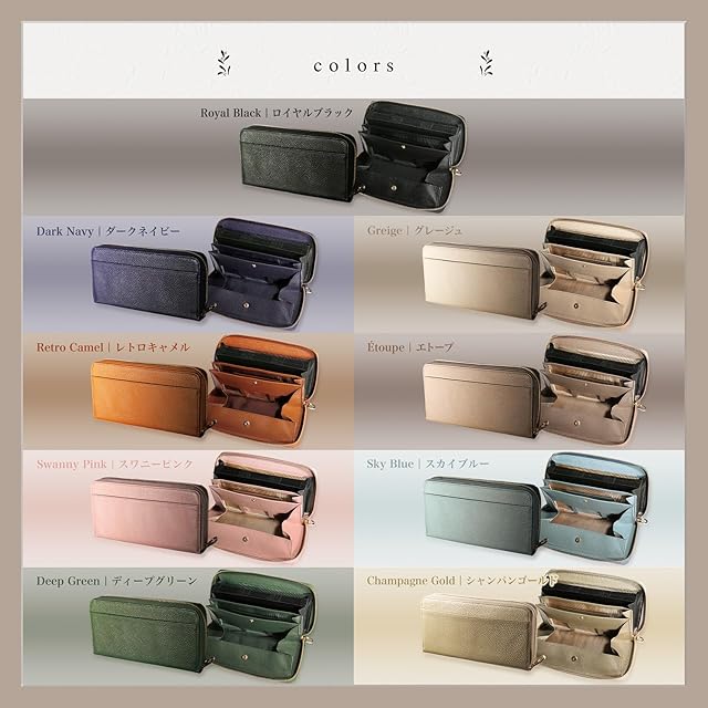 ✅【 サイズ 】縦20.5 × 横11 × 厚み3.2cm 【 重さ 】 約265g 【 収納力 】 カードポケット×30、お札スペース×2、フリースペース×2、小銭スペース×1 【 素材 】 牛本革 トップグレイン シュリンクレザー(植物タンニン鞣し) 【 カラー 】 ロイヤルブラック・グレージュ・レトロキャメル・ダークネイビー・ディープグリーン・スワニーピンク・スカイブルー・シャンパンゴールド