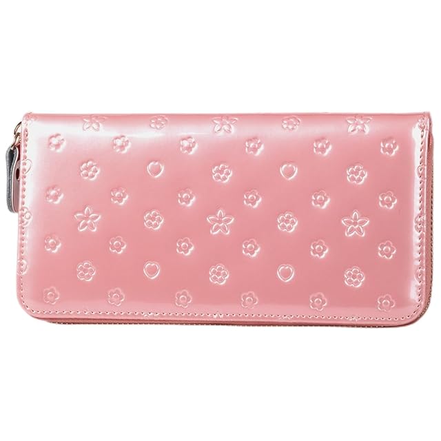 《新品未開封》[フェアーフェアリー] レディース財布 本牛革 エナメル 型押し ラウンドファスナー長財布 140817 (ベビーピンク)