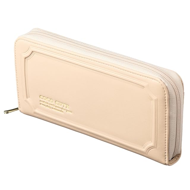 《新品未開封》[COCO CUTE] レディース フレーム 長財布 使いやすい ラウンドファスナー 大容量 小銭入れ付き プレゼント オリジナル ギフト 箱入り Beige (ベージュ)