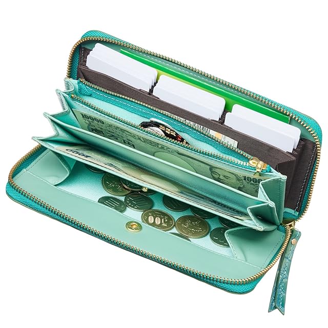 《新品未開封》[FRANCK ROSSINI] イタリア 製 牛革 enamel croco レディース 長財布 縦型 カード ホルダー 20枚収納可 母の日 プレゼント ギフト 箱 入り(Turquoise)