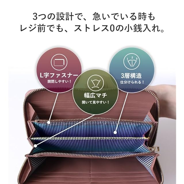 キャッシュレスの時代になりカードを持ち運ぶことも増え けどまだ慣れてなくて定番の長財布が手放せない…そんな方におススメ 男性女性問わず持て、幅広い世代の方に持っていただきやすいシンプル長財布! ラウンドファスナー開閉なのでパカっと大きく開いて中身が見やすい!