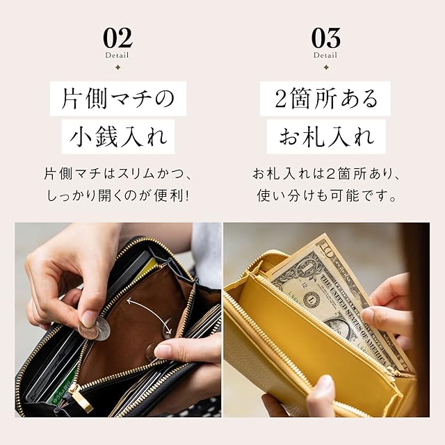 ✅【 2箇所あるお札入れ/マルチ収納可能なフリーポケット 】お札入れは2箇所に分かれているので、お好みで仕分けが可能。大きく開き見やすいのも◎使い方いろいろなフリーポケットは、こちらも2箇所ありレシート・領収書・切符・チケット等マルチ収納ができる便利な収納です。