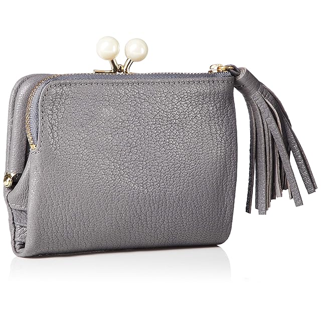 《新品未開封》[ペルケ] アクリル玉がま口2つ折り財布 財布 レディース 本革 08-06-03160 GRY