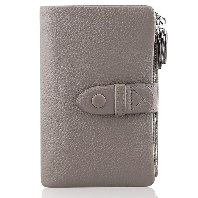 《新品未開封》[F.ZH] 二つ折り財布 レディース 短財布 本革製 大容量 小銭入れ付 小型 軽量 多機能 カードと紙幣大量収納可 ダブルボタン ダブルファスナー (グレー)