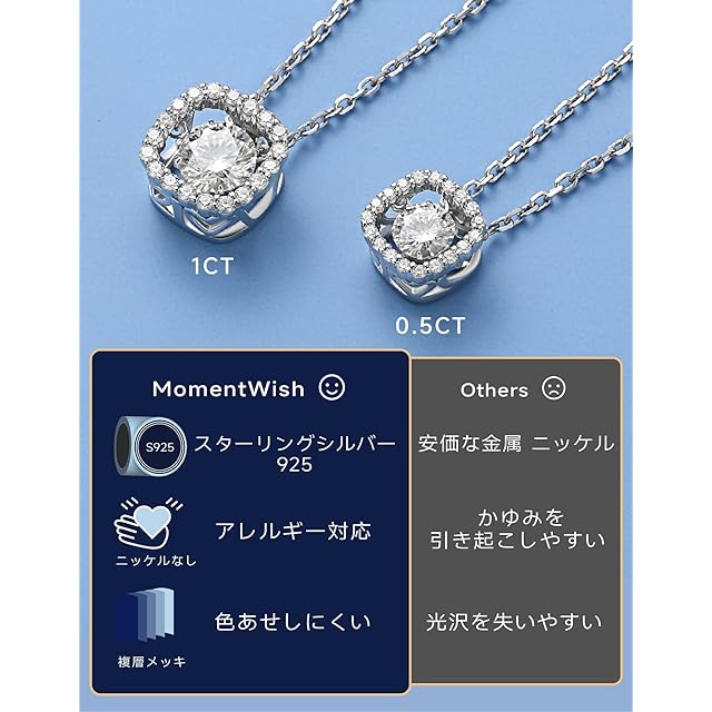 《新品未開封》[MomentWish] ダンシングストーン ネックレス レディース 0.5カラット モアサナイト ネックレス 揺れる ペンダント シルバー925チェーン ギフトボックス付き 女性人気プレゼント(スクエア)