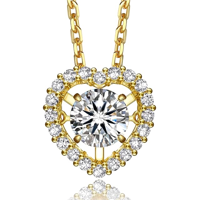《新品未開封》[MomentWish] ダンシングストーン ネックレス レディース 0.5カラット モアサナイト ネックレス 揺れる ペンダント シルバー925チェーン ギフトボックス付き 女性人気プレゼント(ハート)