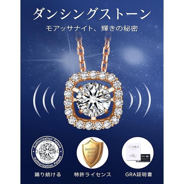 商品名:《新品未開封》[MomentWish] ダンシングストーン ネックレス レディース 0.5カラット モアサナイト ネックレス 揺れる ペンダント シルバー925チェーン ギフトボックス付き 女性人気プレゼント(スクエア)