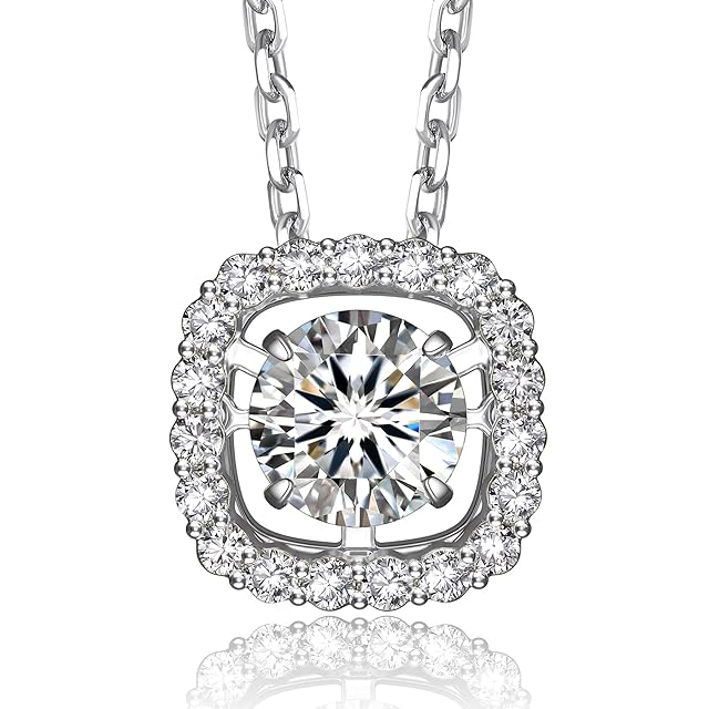 《新品未開封》[MomentWish] ダンシングストーン ネックレス レディース 1カラット モアサナイト ネックレス 揺れる ペンダント シルバー925チェーン ギフトボックス付き 女性人気プレゼント(スクエア)