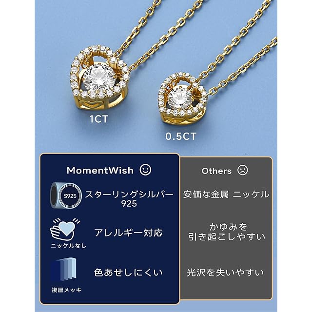 《新品未開封》[MomentWish] ダンシングストーン ネックレス レディース 0.5カラット モアサナイト ネックレス 揺れる ペンダント シルバー925チェーン ギフトボックス付き 女性人気プレゼント(ハート)