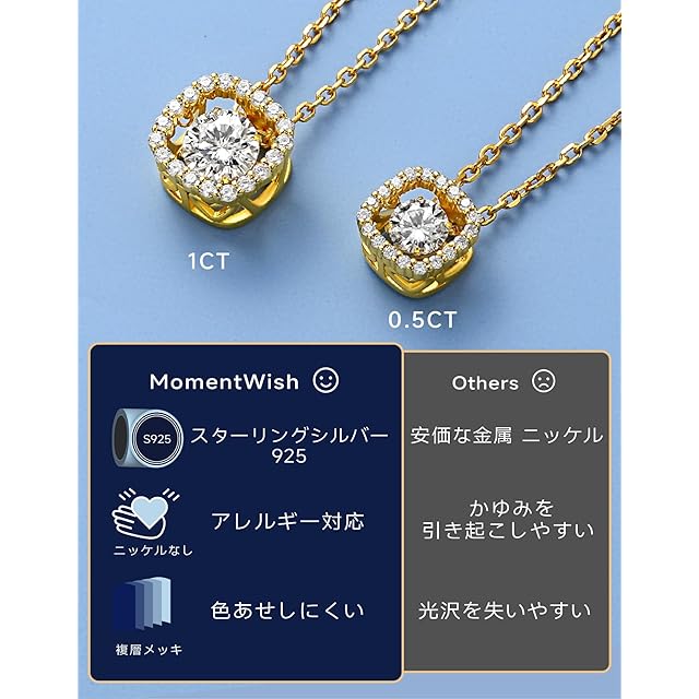製造元:MomentWish ダンシング ネックレス 0.5/1カラット ダンシングモイスサナイト ネックレス 925 スターリングシルバー ペンダント