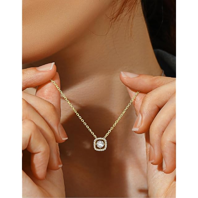 《新品未開封》[MomentWish] ダンシングストーン ネックレス レディース 0.5カラット モアサナイト ネックレス 揺れる ペンダント シルバー925チェーン ギフトボックス付き 女性人気プレゼント(スクエア)