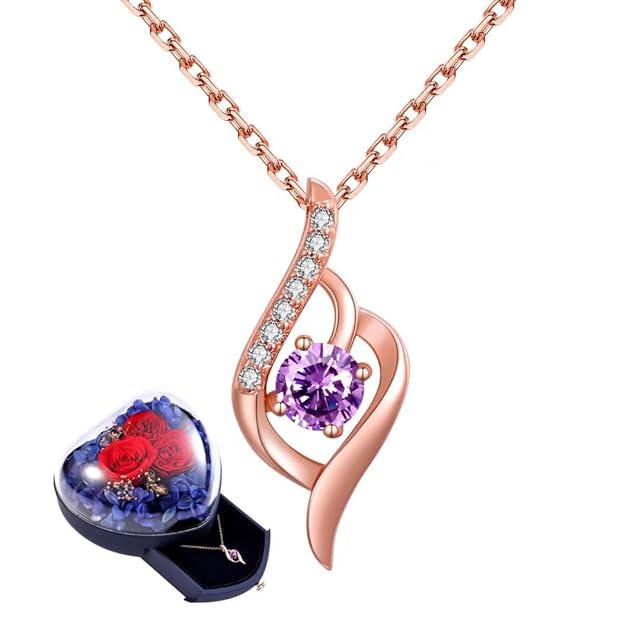 《新品未開封》[sassu fine] 選べる誕生石 ネックレス プレシオサクリスタル(PRECIOSA)国際標準シルバー925 純銀製 レディースネックレス ローズ 枯れない花プリザーブドフラワー ドライフラワー プレゼント(2月ピンクゴールド)