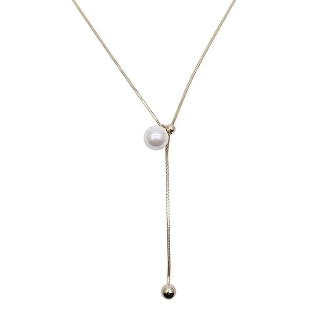 《新品未開封》[ハルジオ] ロングネックレス レディース 人気 ネックレス ロング 長め ラリエット マンテル Y字 パール ゴールド シルバー チェーン アクセサリー ジュエリー ペンダント チョーカー 普段使い おしゃれ かわいい プレゼント 結婚式 (パール・ゴールド)