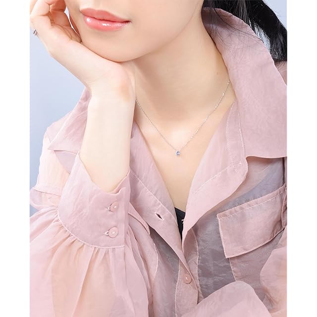 【 海を思わせる青色のドロップがチラリ可愛い!小ぶり一粒ダイヤネックレス 】