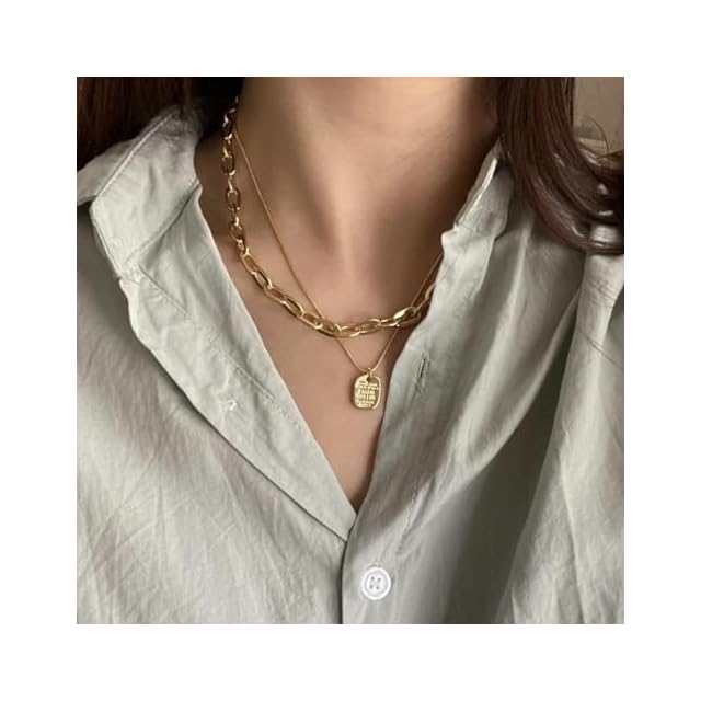 《新品未開封》[Moonstan] ネックレス レディース メンズ 人気 チェーンネックレス 金属アレルギー対応 2連 サージカルステンレス 2本セット ゴールド シルバー 3way (ゴールド)