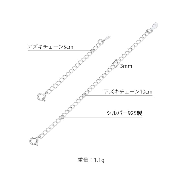 商品名:《新品未開封》[PROSTEEL] アジャスターチェーン 5cm 10cm シルバー925 ネックレス 延長チェーン 2本セット 調節用 引き輪 パーツ アクセサリー