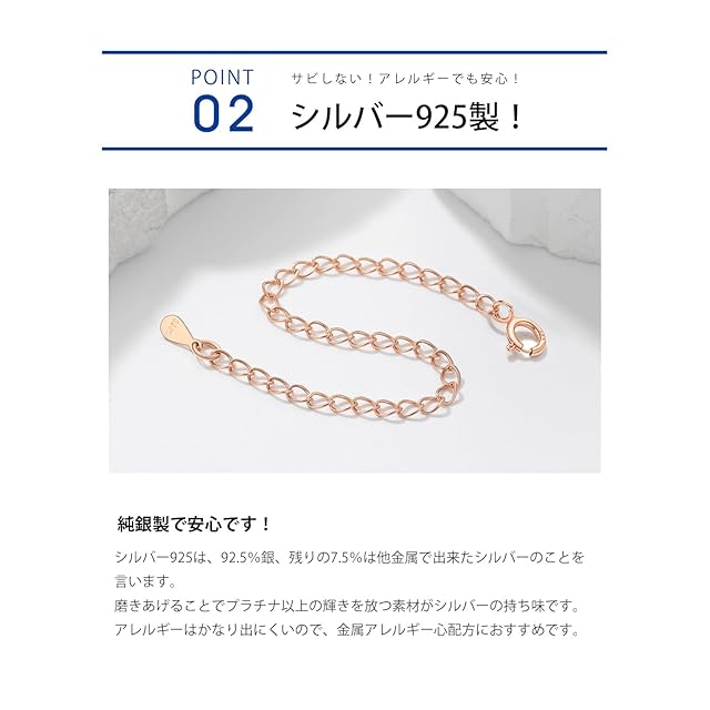 【シルバー925製】シルバー925は、92.5%銀、残りの7.5%は他金属で出来たシルバーのことを言います。磨きあげることでプラチナ以上の輝きを放つ素材がシルバーの持ち味です。アレルギーはかなり出にくいので、金属アレルギー心配方におすすめです。