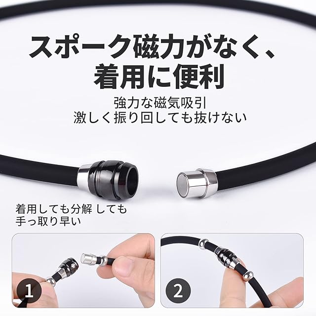 サイズ】長さ:45CM-50CMは人体工学による快適な長さで、どんなスタイルの方でもつけられます。 【素材】素材はシリコンとチタン鋼のステンレスから作成され、シリコンの内部はゲルマニウムとチタン粉末が詰め込まれています。 【デザイン】インターフェースは磁気であるため、開閉が簡単で、シンプルでスタイリッシュです。 【各種の場面着用可】男女兼用で、スポーツシーンだけでなく、日常生活のカジュアルなスタイル、平日出勤日向けの飾り、正式な場合でもファッションの一品として、お使いいただけます。また、お誕生日、ご結婚記念日、母の日、父の日、クリスマス、バレンタインデー向けのプレゼントとしても最高です。 【セット内容】磁気ネックレス*1、、※購入後15日以内、無条件で「返品」「返金」対応致します。当社は出品にの際、細心の注意を払っておりますが、万が一何かございましたら、購入されて90日以内に気軽にご連絡ください。対応させていただきます。