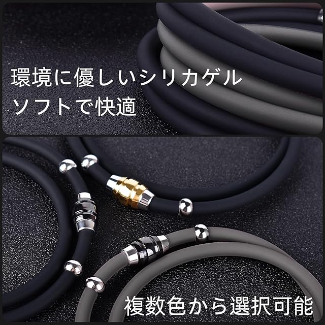 サイズ】長さ:45CM-50CMは人体工学による快適な長さで、どんなスタイルの方でもつけられます。 【素材】素材はシリコンとチタン鋼のステンレスから作成され、シリコンの内部はゲルマニウムとチタン粉末が詰め込まれています。 【デザイン】インターフェースは磁気であるため、開閉が簡単で、シンプルでスタイリッシュです。 【各種の場面着用可】男女兼用で、スポーツシーンだけでなく、日常生活のカジュアルなスタイル、平日出勤日向けの飾り、正式な場合でもファッションの一品として、お使いいただけます。また、お誕生日、ご結婚記念日、母の日、父の日、クリスマス、バレンタインデー向けのプレゼントとしても最高です。 【セット内容】磁気ネックレス*1、、※購入後15日以内、無条件で「返品」「返金」対応致します。当社は出品にの際、細心の注意を払っておりますが、万が一何かございましたら、購入されて90日以内に気軽にご連絡ください。対応させていただきます。