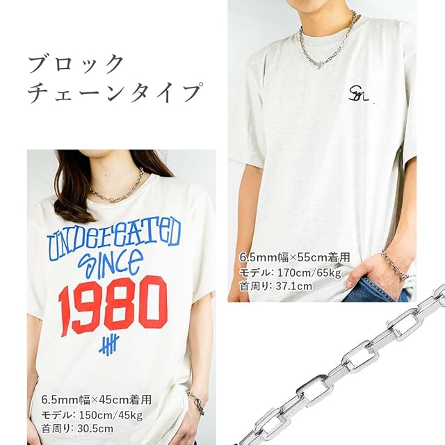 《新品未開封》[Puente] 4サイズ マンテルネックレス チェーン 鎖 幅6.5mm × 45cm ステンレスネックレス マンテル アレルギー チェーンネックレス メンズ レディース シルバーネックレス メンズネックレス ステンレス シルバー 銀色 あずきチェーン (45cm(ブロックタイプ))