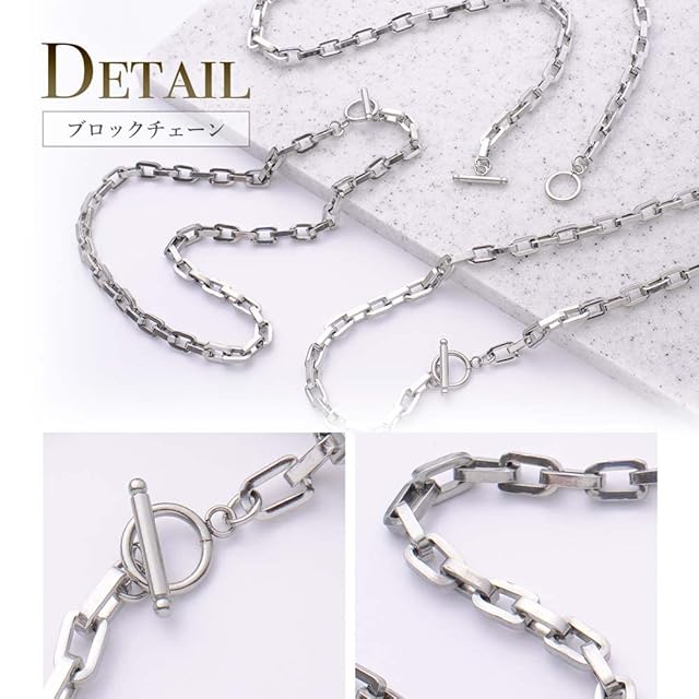 商品名:《新品未開封》[Puente] 4サイズ マンテルネックレス チェーン 鎖 幅6.5mm × 50cm ステンレスネックレス マンテル アレルギー チェーンネックレス メンズ レディース シルバーネックレス メンズネックレス ステンレス シルバー 銀色 あずきチェーン (50cm(ブロックタイプ))