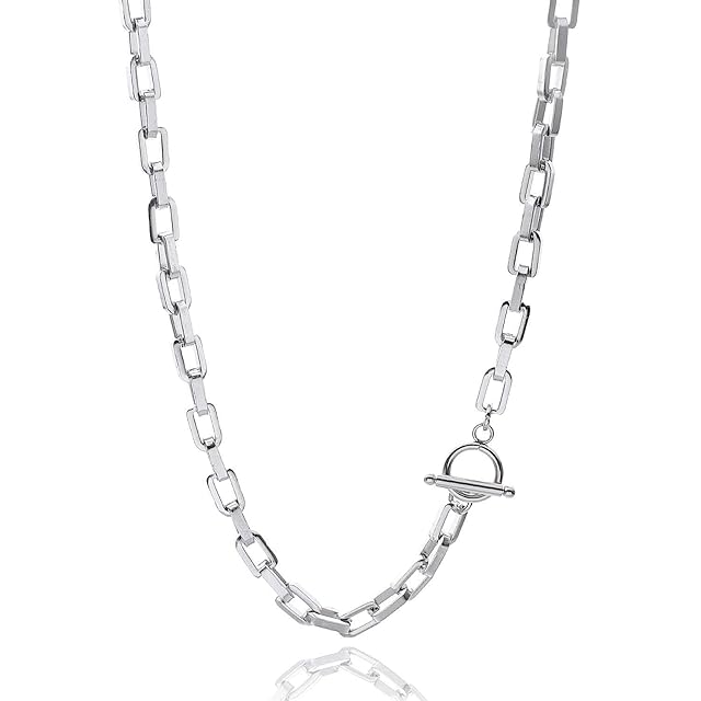 《新品未開封》[Puente] 4サイズ マンテルネックレス チェーン 鎖 幅6.5mm × 55cm ステンレスネックレス マンテル アレルギー チェーンネックレス メンズ レディース シルバーネックレス メンズネックレス ステンレス シルバー 銀色 あずきチェーン (55cm(ブロックタイプ))