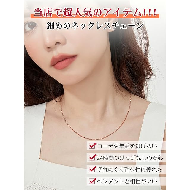 商品名:《新品未開封》[Silvora] ピンクゴールド ネックレス チェーンのみ レディース 細め チェーンネックレス 長さ45~55cm (55cm) 幅1mm アクセサリー