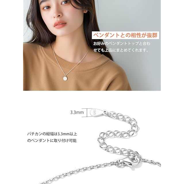 [ペンダントとの相性が抜群] バチカンの縦幅は3.3mm以上のペンダントに取り付け可能です。単品はもちろん、重ね付けや、お手持ちのペンダントトップを通して楽しむのもおすすめです。
