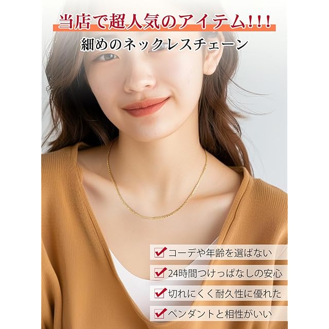 商品名:《新品未開封》[Silvora] ゴールド ネックレス チェーン レディース k18金 あずきチェーン 細め 長さ35~75cm (40cm) 幅1.5mm アクセサリー