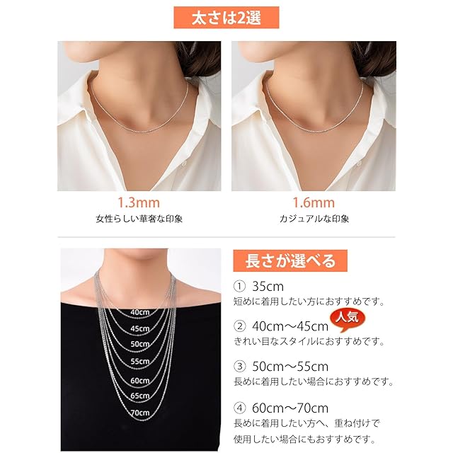 商品名:《新品未開封》[Silvora] シルバー925 ネックレス チェーン レディース フレンチロープチェーン 細め 長さ45~70cm (50cm) 幅1.6mm アクセサリー