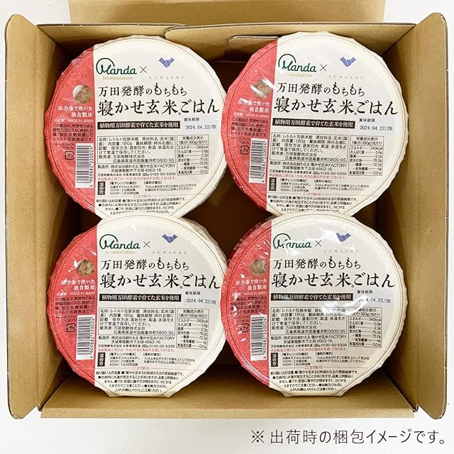 結わえるとのコラボ商品登場!<br> 大人気テレビ番組「マツコの知らない世界」でも紹介された「結わえる」とコラボ。<br> 植物用万田酵素で育てた玄米を使用した万田発酵の人気商品です。<br> <br> <br> ●ここがおすすめ<br> ■着色料/化学調味料、無添加<br> 自分のため、家族のためにもっと安心で安全な食事を。<br> そんな想いで、着色料・化学調味料無添加にこだわって作り上げました。<br> 植物用万田酵素で育てた、身体にうれしい玄米の味をお楽しみいただけます。<br> <br> ■植物用万田酵素で育てた玄米を使用<br> 万田31号を使用し、「美味しくて健康によいお米づくり」を目指して、<br> 環境にやさしい安全なお米づくりに取り組み、<br> 手間を惜しまず愛情たっぷりにお米を育てています。<br> <br> ■もちもち食感<br> (株)結わえる独自の製法により、パサパサになりがちな玄米をもっちもちに仕上げました。<br> 玄米=パサパサなイメージを一変させます。<br> <br> ■誰でも簡単<br> 炊くのに手間がかかる玄米をパックライスにすることで、お子様からお年寄りの方まで、<br> いつでもお手軽にお召し上がりいただけます。<br> ※「寝かせ玄米」は株式会社結わえるの登録商標です。<br> <br> <br> 商品詳細<br> 【品名】レトルト包装米飯<br> 【内容量】12食(180g×12パック)<br> 【形状】トレー<br> 【原材料名】玄米(国産)<br> 【栄養成分表示】1食分(180g)当たり<br> エネルギー340kcal<br> たんぱく質5.6g<br> 脂質2.3g<br> 炭水化物76.2g(糖質72.2g、食物繊維4g)<br> 食塩相当量0.01g<br> <br> 【保存方法】直射日光・高温・多湿をさけて常温で保存してください。<br> <br> 【賞味期限】製造日より1年<br> <br> 【お召し上がり方】<br> ■電子レンジの場合<br> 点線までフィルムをはがし<br> 500W:2分間加熱<br> 600W:1分30秒加熱<br> <br> ■湯煎の場合<br> フィルムをはがさずこの面(フィルム面)を上にして充分なお湯の中で15分以上加熱してください。<br> <br> 【使用上の注意】<br> ・包装内に水滴が発生することがありますが、品質上問題ありません。<br> ・フタ、容器に傷や穴が開きますと、カビが生えますのでご注意ください。<br> ・加熱及びお召し上がりの際は、ヤケドにご注意ください。<br> <br> 【販売者】<br> 万田発酵株式会社<br> 〒722-2192<br> 広島県尾道市因島重井町5800-95<br> <br> 【製造所】<br> 株式会社結わえる 寝かせ玄米FACTORY<br> 茨城県稲敷市下太田4663-16<br>
