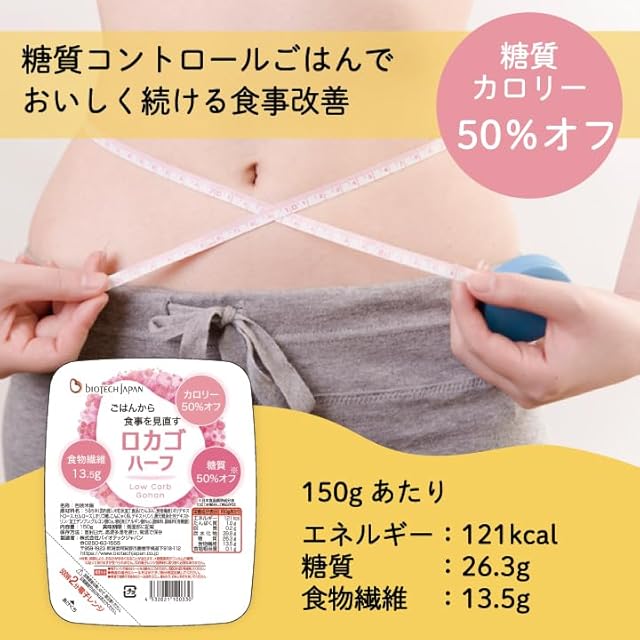 商品名:《新品未開封》バイオテックジャパン ロカゴハーフ (150g×20個) 糖質50%オフ 低糖質 パックご飯 食物繊維 ダイエット 低糖質ごはん ごはんパック 低糖質米 ロカゴ