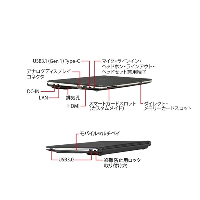 LIFEBOOK S938 13.3インチ 中古ノートパソコン 外形寸法(W×D×H)(注:突起部含まず) 315.8×214×11.0~19.8mm 重量:約1.14kg