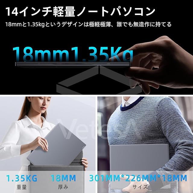 【2025年新型第第11世代 N5095ノートパソコン・大容量34.65Wh】VETESAノートPCはDDR4 16GB RAMと高速512GB M.2 SSDを搭載しており、高性能で低消費電力のパルス周波数最大2.9GHzの 第11世代 N5095(4コア4スレッド)を搭載。インターネットやWord・Excelなどのマルチタスクがより高速に処理できてカク付きのないスムーズな操作を実現します!高速の操作を実現しながら、発熱もちゃんと抑える高回転速の静音冷却フアンも搭載されているため、熱による引き起こされるフリーズ、シャットダウン、ブルースクリーンなどの問題が前世代J4105より大幅に削減しオフィス作業や個人用にコスパ最高のlaptopです。34.65Whの大容量バッテリー、最大4~6時間の駆動を実現し、オフィス作業やエンターテインメントに便利です。
