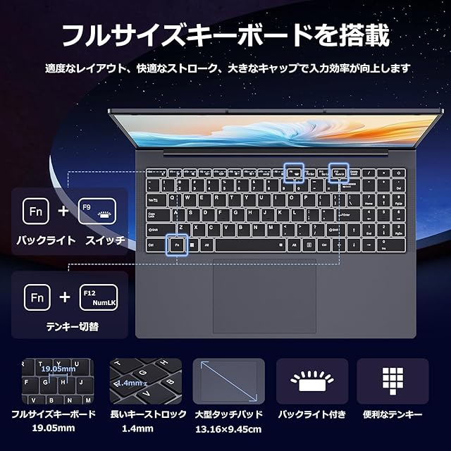 圧倒的処理速度:このノートパソコンはインテル 第8世代Core i5 プロセッサー を搭載(最大 3.60 GHz までブースト可能)、デュアルコア/クアッドスレッド設計により、日常業務(メール、ウェブブラウジング、オフィスアプリケーション)やマルチタスキングをスムーズに処理。16GB 大容量 RAM が複数のアプリケーション同時実行をサポート、512GB SSD(読み取り速度520MB/s)でOS起動9秒を実現、レスポンスを向上させます;鮮明な視覚体験:16型FHD IPS広視野角ディスプレイ;1920×1200解像度(一般HD比+125%画素密度)+IPSパネル搭載で、角度による色偏移を5%以下に抑制。72% NTSCカバー率を実現し、動画再生や資料作成時の色彩精度を確保。従来の15.6型画面と比較して縦方向の表示領域が約2行目拡大され、作業効率を向上させるノートpcです;パワフルな拡張性:デュアルバンドWi-Fi(2.4GHz/5GHz)+BT5.0で最大1.7Gbps通信(802.11ac比2倍高速)。HDポート / USB3.0×3 / Type-C / Micro SDスロットを完備し、4Kモニターと外付けSSDの同時接続が可能。ビジネス向けノートパソコン:Win 11 ProとOffice 2024 搭載。Word、Excel、PowerPointなど仕事に不可欠なソフトすべて事前インストールされ、即時業務開始可能;軽量薄型持ち運び易いノートpc:約 1.7kg の軽量ボディ(ネット重量)と 20mm のスリムな厚み(357.5 x 245 x 20 mm)で、持ち運びに便利。外出先やオフィス間の移動にも負担になりません。快適なタイピング環境: バックライト付き US英語キーボード を採用。暗い環境でもキーが見やすく、快適な入力作業をサポートします。キートップには耐久性に優れたシルク印刷を施しています。また、便利なテンキーを備えて、数字入力をより快適に。高精度Web会議:100万画素カメラ&デュアルマイク、HD解像度カメラ(720p対応)で、オンライン授業/Zoom会議の映像・音声をクリアに伝送。