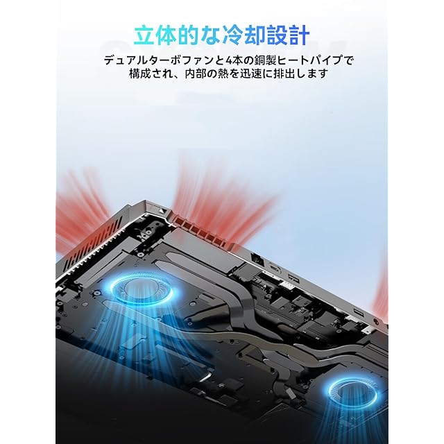 【デュアルファン&4本のヒートパイプで高効率冷却】S1はゲームプレイ時の高負荷にも対応する冷却システムを搭載しています。デュアルターボファンと4本の銅製ヒートパイプにより、熱が迅速に放出され、パソコン内部の温度を効果的に抑えます。4つの通気口が冷却効率をさらに高め、長時間のゲームプレイでも安定した性能を維持。温度によるパフォーマンス低下を防ぎ、プレイヤーが快適なゲーム体験を得られるよう設計されています。