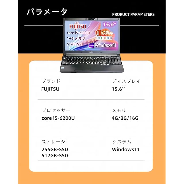 商品名:《新品未開封》【整備済み品】富士通 A576 15.6型 第6世代CPU Core i5-6200U /Windows11/MS Office2019搭載/初期設定不要/DVDドライブ/WIFI/Bluetooth/HDMI (ブラックキーボードWebカメラ内蔵, メモリ16GBSSD512GB)