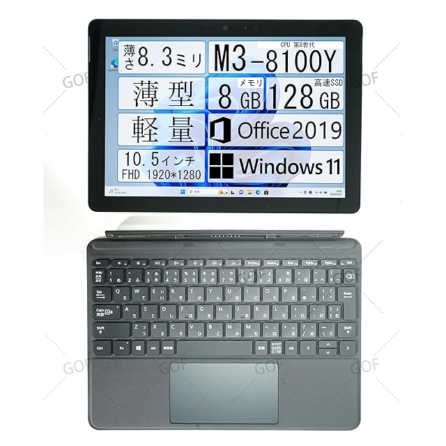 商品名:《新品未開封》【整備済み品】Surface Go2(1927)キーボード付 / m3-8100Y / メモリ8GB / SSD128GB / 軽量2 in 1ノートパソコン / 重さ約770g / 10.5インチ / Windows11 / Office2019搭載 / サーフェス Go 2