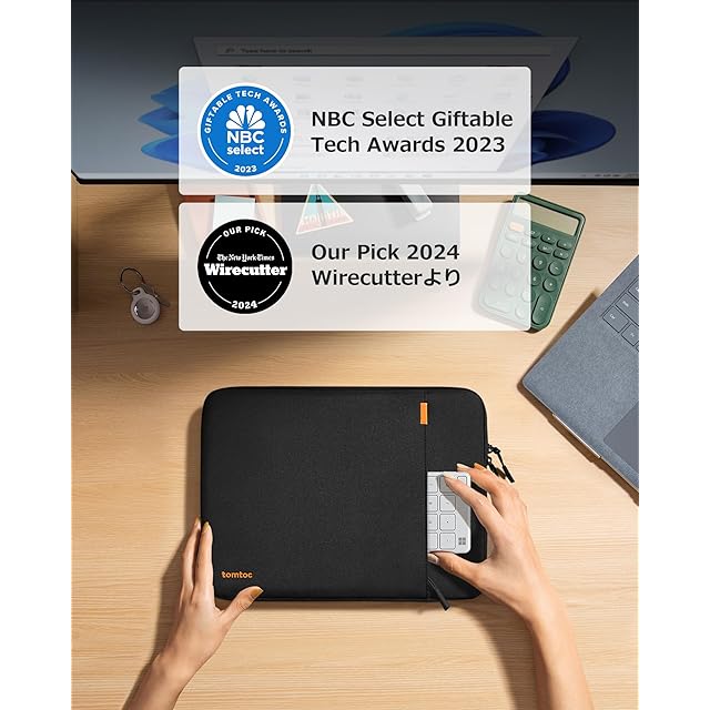 【メディアやお客様からの評判】想像以上の保護力や優れた品質、ピッタリフィットな装着感で、このPCケースは広く高評価されています。Wirecutterより「一番人気のノートパソコンスリーブ ・MacBook Proケース」と褒賞され、さらにNBC Selectより「Select Giftable Tech Awards 2023」を授賞されました。注:Wirecutter :「The New York Times」所属ガジェットレビューメディア。