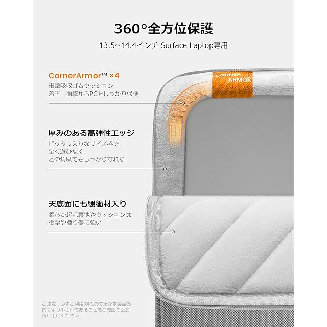 商品名:《新品未開封》tomtoc 360°耐衝撃保護 13.5-14インチ パソコンケース Surface Dell HP Lenovo 富士通 Dynabook Asus Chrombook ワイドPC対応 スリーブ ノートPCケース インナーバッグ 撥水加工 軽量 グレー